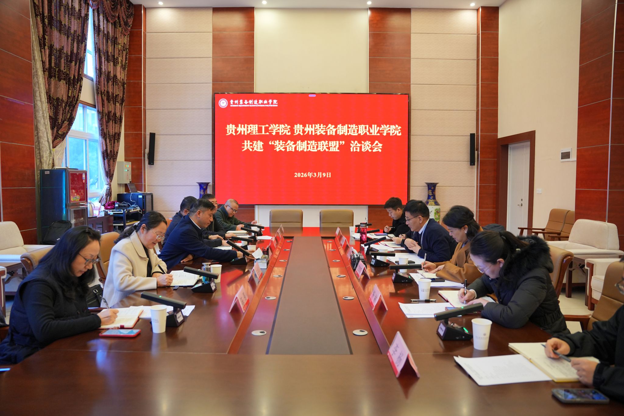 3月9日,校党委书记张大林带队到贵州装备制造职业学院、贵阳职业技术学院调研,推动高校协同发展,专业共建、人才共享,更好服务贵州现代产业体系高质量发展。beat365在线唯一官网副院长杨鹏、安艳玲,贵州装备制造职业学院院长刘渠、党委副书记李峥嵘、副院长李秀丽,贵阳职业技术学院院长李昕昌、副院长王方平出席调研座谈会。张大林强调,高校共同承载“为党育人、为国育才”的使命,肩负着引领教育科技人才一体化发展的时代重任。我们要深入贯彻落实省委省政府部署和“...