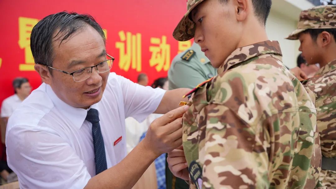 授2024级新生军训团团旗。