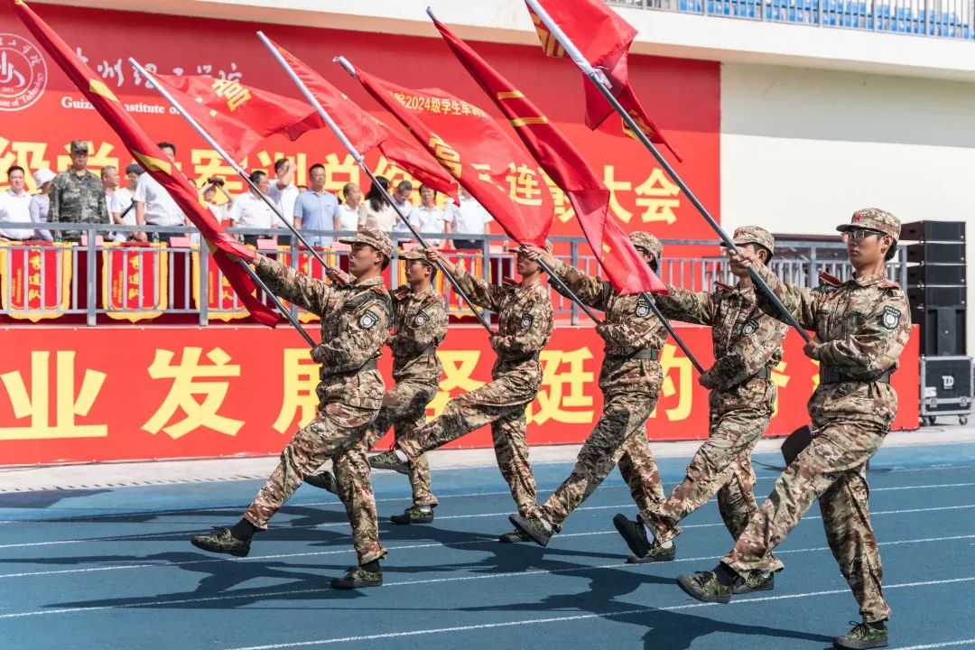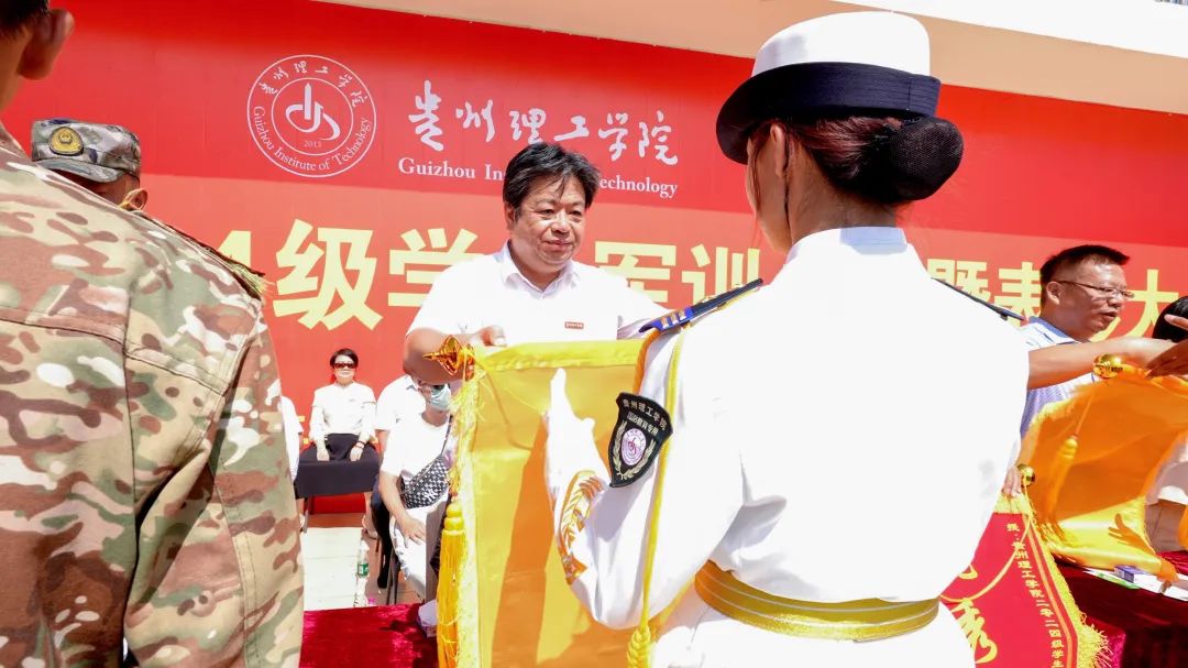 9月13日上午10时,校领导苏向东、潘良明、胡兴灿、高勇、贺梦依、张开智、李少波、杨鹏,武警贵阳支队执勤三大队中校政治教导员苏超就座主席台观看军训汇报表演。