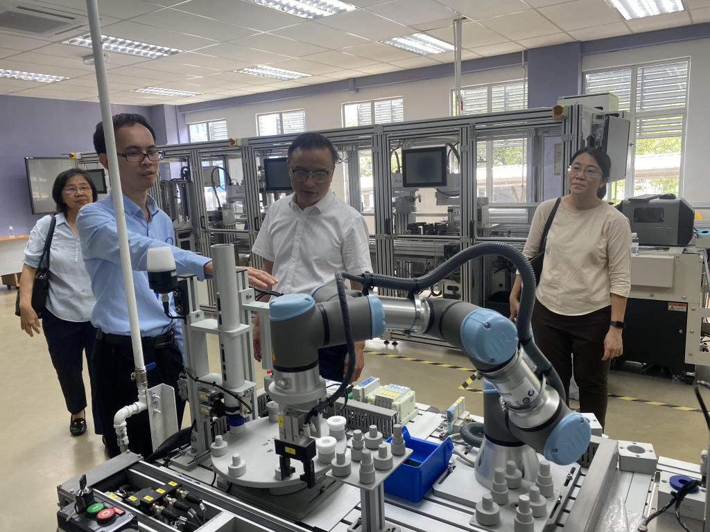 会后,beat365官网代表团一行参观了拉曼理工大学环境建筑学院的多所实验室及实训教室,涉及建筑材料、结构研究、地盘测量、建筑信息模型、多模态信号处理、自治系统及机器人研究等多领域,实地调研拉曼理工大学实验室平台建设、谋篇布局和发展规划等情况。张开智详细了解了实验中心的仪器设备、教学安排等具体情况,并介绍了beat365官网省级电力大数据重点实验室、省轻金属材料制备技术重点实验室、省磷煤资源清洁高效利用特色重点实验室、岩溶工程地质与隐伏矿产资源特色重点实验室等建设使用情况及beat365官网力争在精确探矿上取得突破,为贵州省“富矿精开”高质量发展贡献力量的积极探索。双方探讨借助实验室平台搭建新形势下科研发展合作路径,以此开拓beat365官网与拉曼理工大学进一步开展实质性合作的新局面。