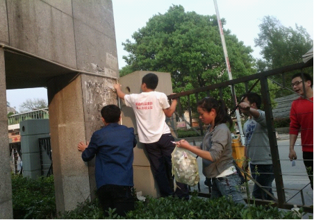 2014年4月15日下午,化工133班全体同学开展了以“爱护身边环境,建设美好校园”为主题的活动,清除校园内教学楼、食堂等地乱张贴的小广告,给全校师生营造一个更加优美舒适的学习环境,创造一个更加和谐美好的校园。