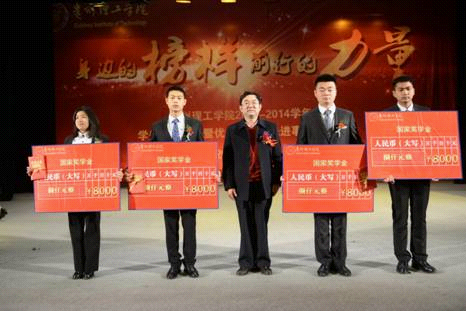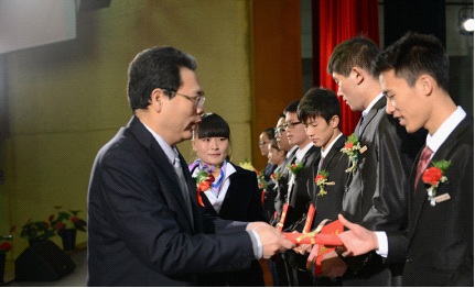 12月12日下午,beat365官网在逸夫大礼堂举行以“身边的榜样前行的力量”为主题的2013—2014学年学生表彰大会暨优秀大学生先进事迹报告会。我院学生丁三、王衍伟、刘浩达等获得国家奖学金、励志奖学金、校级奖学金以及优秀班干的同学获得表彰和奖励。