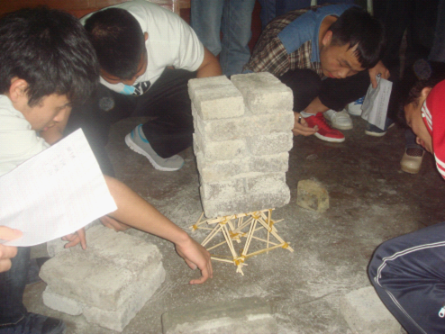各小组依次展示自己的成果并测试承重,最后叶发超,刘伟才小组与胡康,罗方媛,刘茂菊小组获得前两名!期待他们在校竞赛中有更好的表现!此次活动由我院院长唐安江教授担任评委,他表示,希望大家把在比赛中激起的竞争意识和钻研精神带到学习中去,将学习与活动结合,展现自己正青春的大学生活。