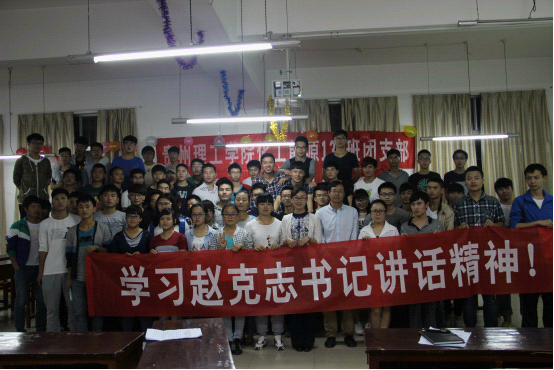 2015年5月12日晚七点三十分,我院能源132班与制药学院生药141班同学在三教114教室一起召开“学习赵克志书记‘五四’讲话精神”主题团日活动,制药学院辅导员李安,我院团总支书记蔡诚老师、辅导员冯静静老师出席。