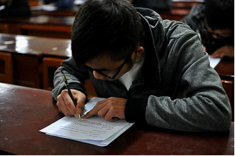 认真写作的同学