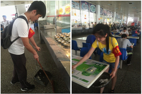 6月6日,化学工程学院学生党支部分别在一食堂和二食堂开始了为期一周的志愿服务活动,服务内容包括维持食堂秩序、打扫食堂卫生、呼吁同学们爱护食堂环境等。