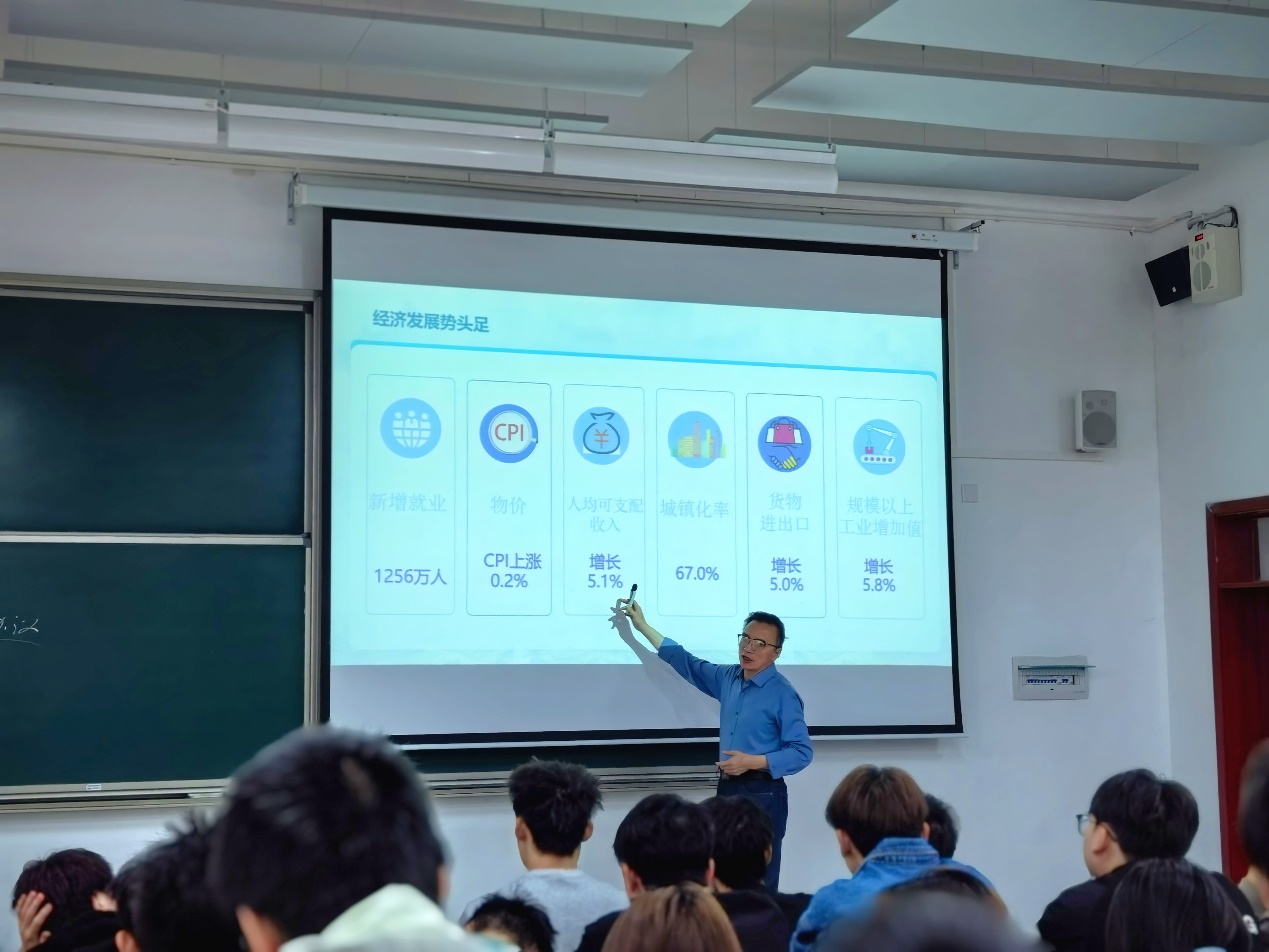 为深化专业教育与思政引领融合,5月30日,校党委委员、副校长张开智教授在G2115教室以“中国经济行稳致远”为主题,为建筑与城市规划学院环设222、建筑221、222班的同学们带来一堂深刻而生动的专题思政课。