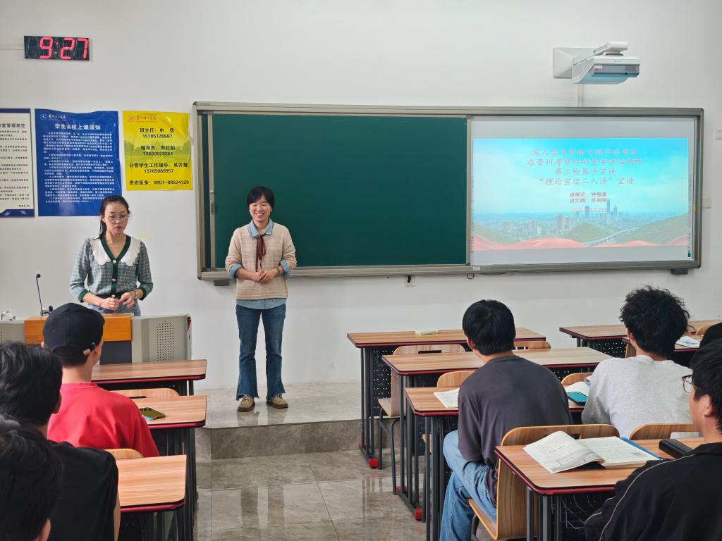 为深入贯彻习近平总书记在贵州考察时的重要讲话精神,6 月 5 日,我院党总支副书记钟银星与苏利荣两位老师走进交通 231 班课堂,面向全体学生开展宣讲活动。