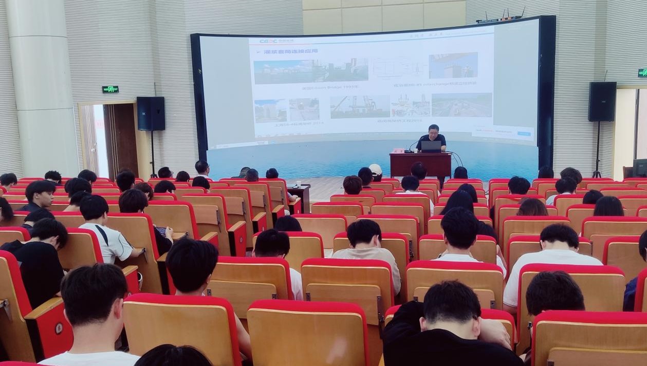 顾客介绍了国内城市桥梁施工技术现状,主要以现场浇筑方式为主,部分预制拼装方式为辅,并认为城市桥梁将进入全预制拼装时代。随后以绍兴市智慧快速路为案例,讲解了全预制拼装桥梁技术理念。深入浅出地分析了桥梁预制拼装施工关键技术研究和工程实践应用与创新。在讨论与交流中,顾客分析了建筑行业面临的机遇和挑战,从学生岗位需求出发,提出了指导性建设意见。