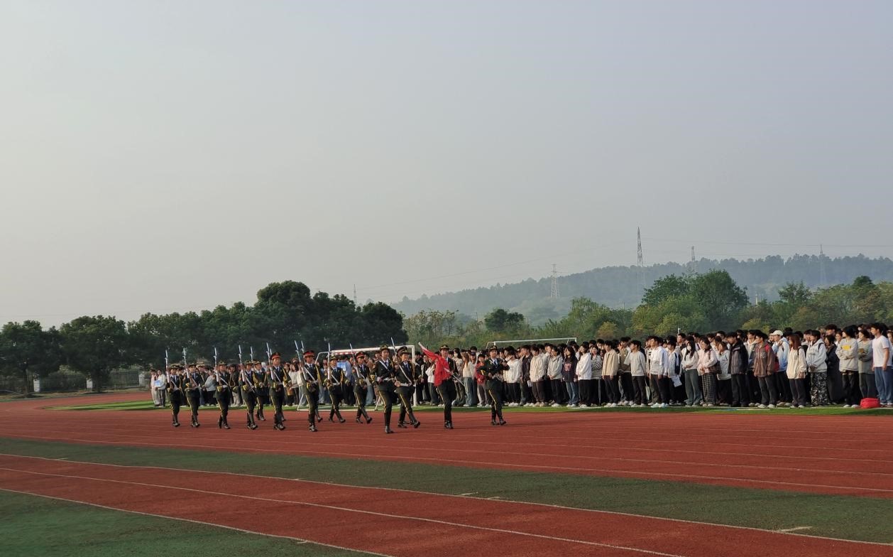 上午8:00,国旗护卫队旗手们迈着铿锵有力的步伐,队容严整、精神饱满地向旗台走来,伴随着雄壮、激昂的中华人民共和国国歌,鲜艳的五星红旗冉冉升起。在迎风飘扬的五星红旗下,全体师生向国旗敬礼,神情严肃,共同表达着心中最崇高的敬意和对祖国无限的忠诚。