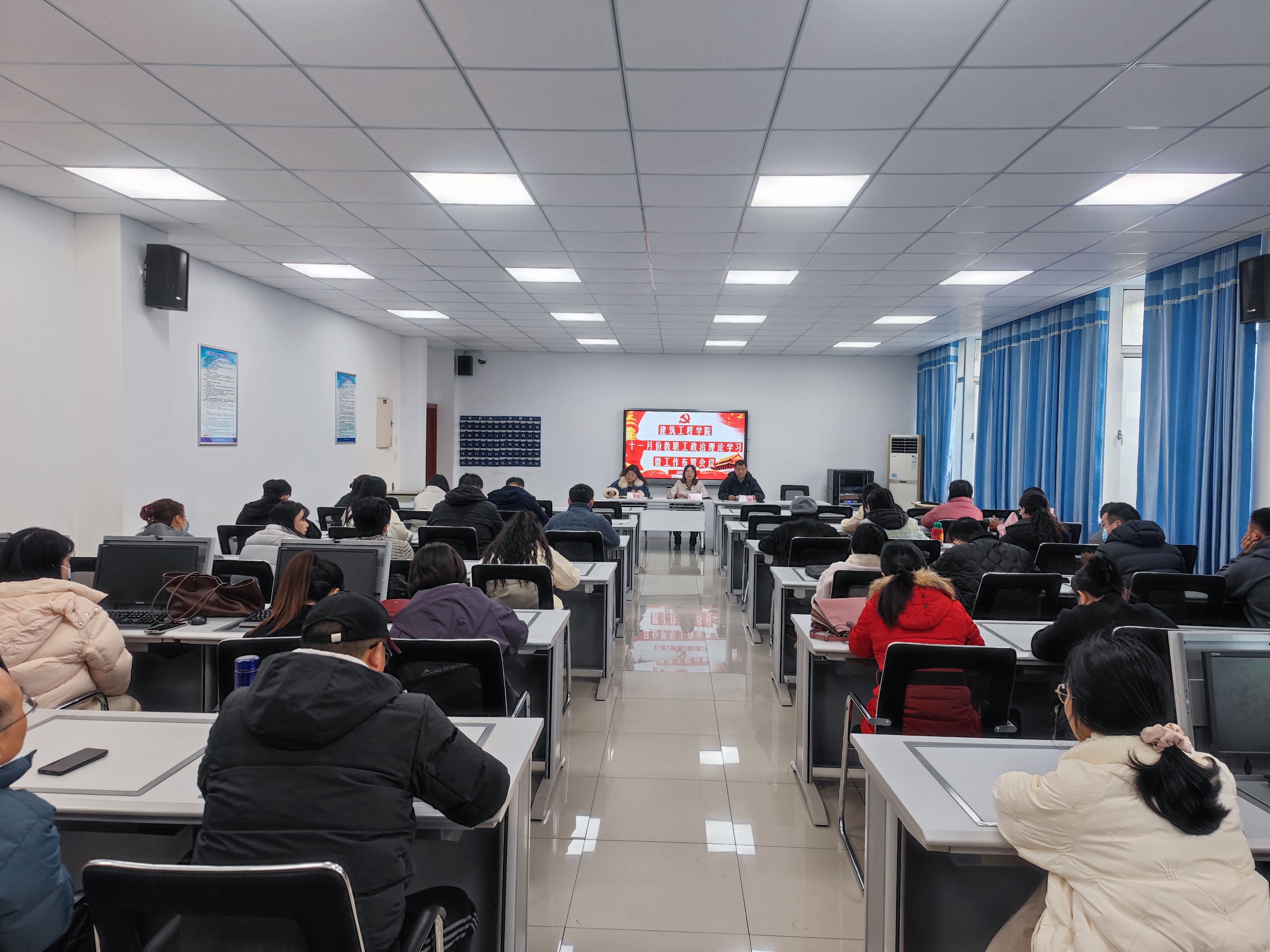 11月19日下午,betway西汉姆联官网在建工楼304会议室召开了十一月份教职工政治理论学习暨工作布置会议,学院党政班子及全体教职工参加会议,会议由学院党总支副书记(主持工作)丁怡琴主持。