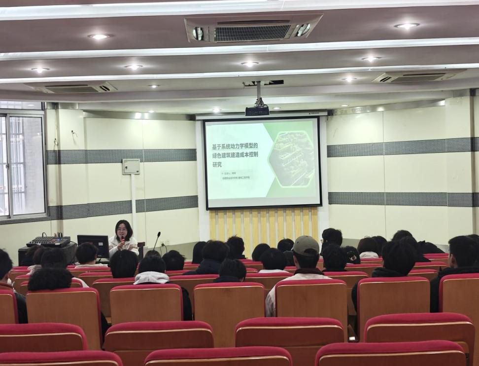为深化师生对绿色建筑发展的认识,12月3日下午,betway西汉姆联官网在图书馆报告厅成功举办《基于系统动力学模型的绿色建筑建造成本控制研究》专题学术讲座。本次讲座由建筑工程技术教研室蒋琦老师主讲,吸引了相关专业教师及百余名学生到场聆听。