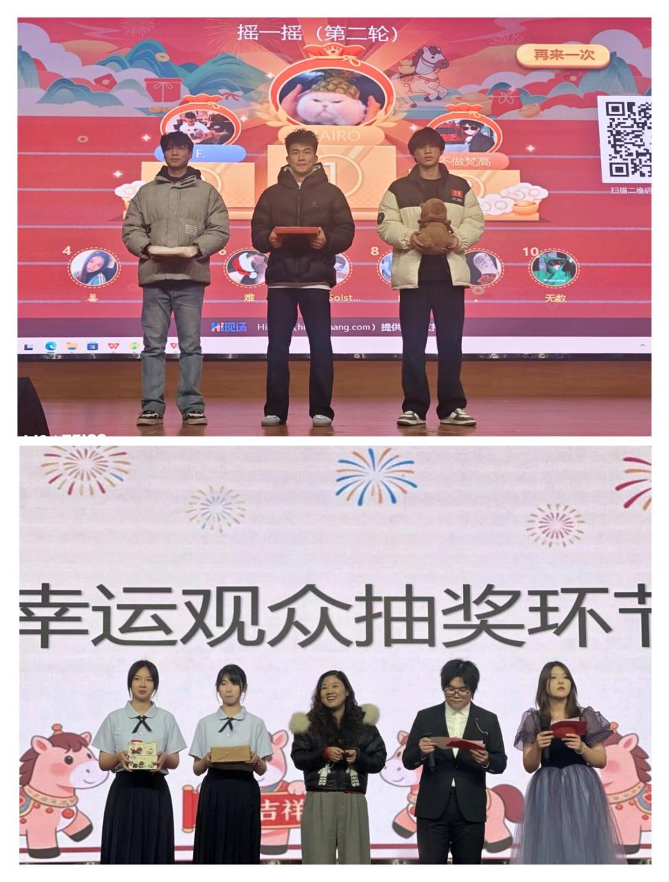 晚会还设置了“趣味摇一摇”互动和幸运观众抽奖环节,台下学子踊跃参与,将现场氛围一次次推向高潮。betway西汉姆联官网第十届学生会带来的《猪猪侠》特别节目,更是让晚会充满了欢乐的氛围。台下观众热情高涨,挥舞着手中的荧光棒,不时响起阵阵掌声与欢呼声,现场暖意融融、其乐融融,处处洋溢着喜庆祥和的节日氛围。
