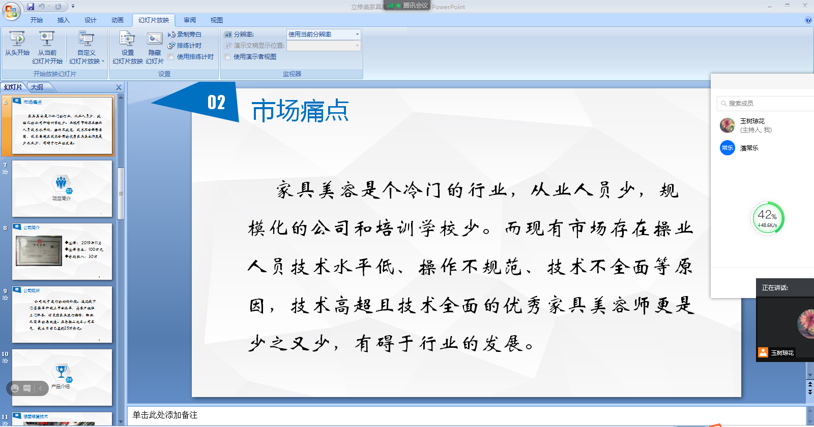 根据赛事规则,各参赛项目团队通过钉钉共享屏幕展示自己团队的PPT,围绕产品/服务介绍、市场分析及定位、痛点分析及解决方案、商业模式、财务预测、未来发展方向以及市场前景等进行阐述。所有项目路演完后,宁业群、王文俊等进行了针对性的点评,最终根据得分推荐6支队伍参加校赛的角逐。