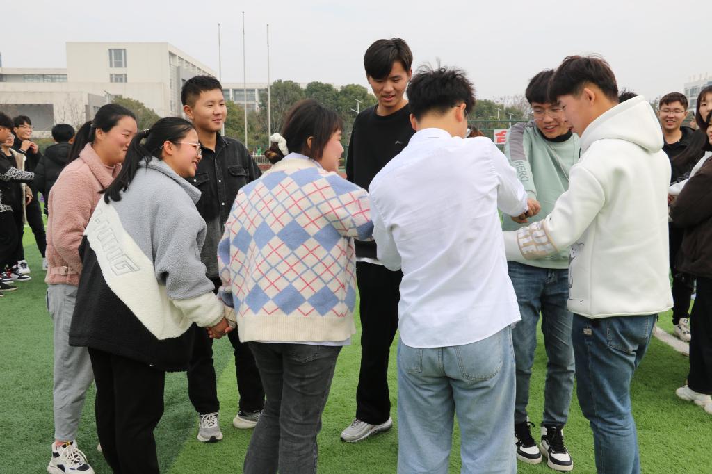 活动开始,所有学生通过抽卡片随机分到8个团队,随后通过“滚雪球”,每个团队的成员进行自我介绍,逐渐破冰并参与其中。接下来在“爱的抱抱”环节,团队所有成员充分发挥聪明才智,完成主持人设置的任务。最后,来到了难度最大的“情解千千结”游戏,所有成员在不松手的前提下通过团队协作与交流解开十分复杂的“千千结”,恢复到初始状态。凭借着彼此之间的相互鼓励和齐心协力,同学们最终均成功解开了这个难题,从中感悟到团队合作、交流的魅力所在,增进了彼此之间的美好情谊。