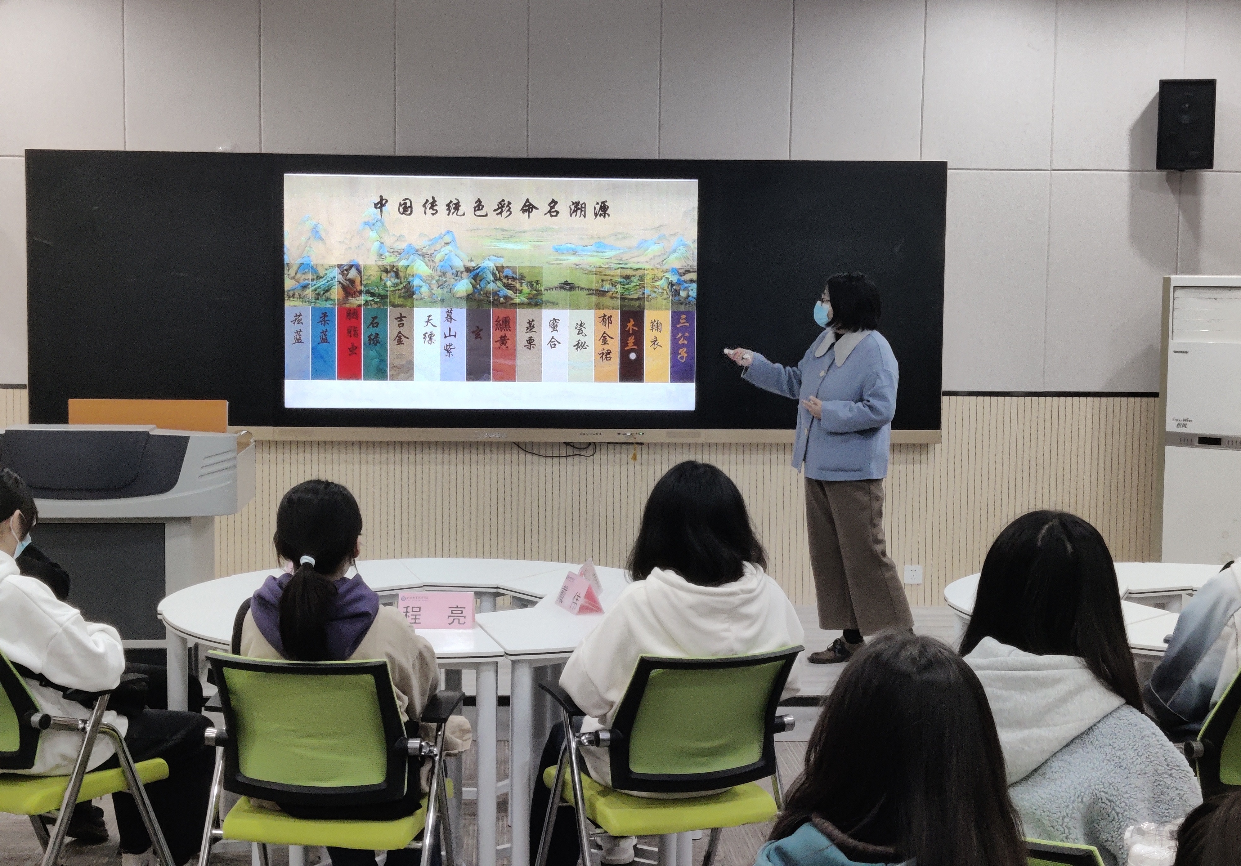 沈晋老师将16个古拙玄妙的颜色词从色彩源流中打捞出来,以小讲座的形式,将之还原为天地万物的本来面貌,从而呈现古人对颜色的感知,以及色彩在经史、礼仪、文学、艺术中的表达,解读中国传统色的源流和美学特征。让传统色彩走进日常生活,让色彩背后的文化韵味成为本场师生的共同感受。