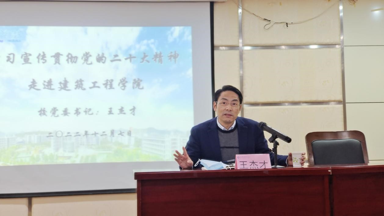 宣讲中,王杰才通过鲜活的事例、精辟的概括、生动的讲解,对二十大精神进行解读。他从六个问题入手分享了在学习二十大精神时的思考和认识:如何看待二十大;大会对于十年的伟大变革进行了十六个方面的总结,对我们的影响是什么;如何体会马克思主义中国化、时代化的新境界;对于中国式现代化的理解;国家对教育的重视已经提升到前所未有的高度,预示着什么;以自我革命推进党的建设落实到学校中,怎么做。整场宣讲既全面系统的介绍大会基本精神、基本内容,又抓住重点方面、关键问题集中阐释,同时结合职业教育的发展、学校的发展,引导教职工把自己“摆进去”学,才能真正“学进去”,做到入脑入心,学以致用。