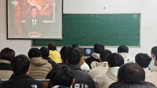 “明天的中国,希望寄予青年。青年兴则国家兴,中国发展要靠广大青年挺膺担当。年轻充满朝气,青春孕育希望。广大青年要厚植家国情怀、涵养进取品格,以奋斗姿态激扬青春,不负时代,不负华年。”或观看视频,或大声朗读,辅导员们带着同学们一起学习习近平主席发表的2023年新年贺词,沉稳有力的话语带给我们无穷的奋进力量。