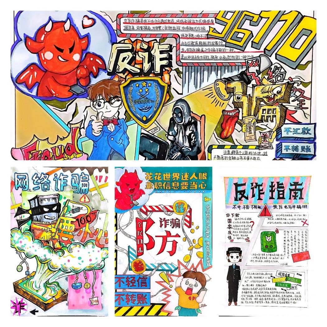 本次活动通过邀请同学们自己设计和绘制防电诈海报,使学生们在作品准备时,自觉主动的去搜集资料,学习更多反诈知识。同时,也拓展了开展防电诈教育的方式方法,从单一的“老师讲学生听”变成“学生画学生看”,让防电诈宣传教育既有“大张旗鼓”,也有“润物无声”,从而提升教育实效,进一步推动了“平安校园”的建设。