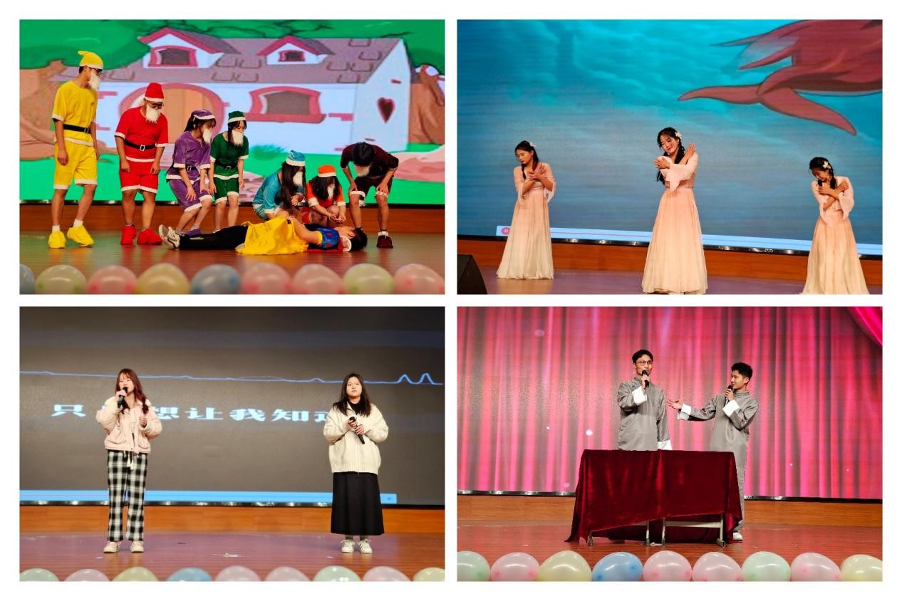古典舞《大鱼》舞姿曼妙,尽显中国古典舞的含蓄优美;深情合唱《背对背拥抱》教人珍惜生活中的点点滴滴;相声《大学生“活”》和脱口秀《大学的事》结合自身体验,说出了大学生活的丰富多彩和快乐烦恼,引起了大家的共鸣,掌声不断;话剧《白雪公主历险记》精彩反串,引爆全场笑点;比赛在第八届学生会全体同学表演的情景剧《白日梦想家》中圆满落幕。