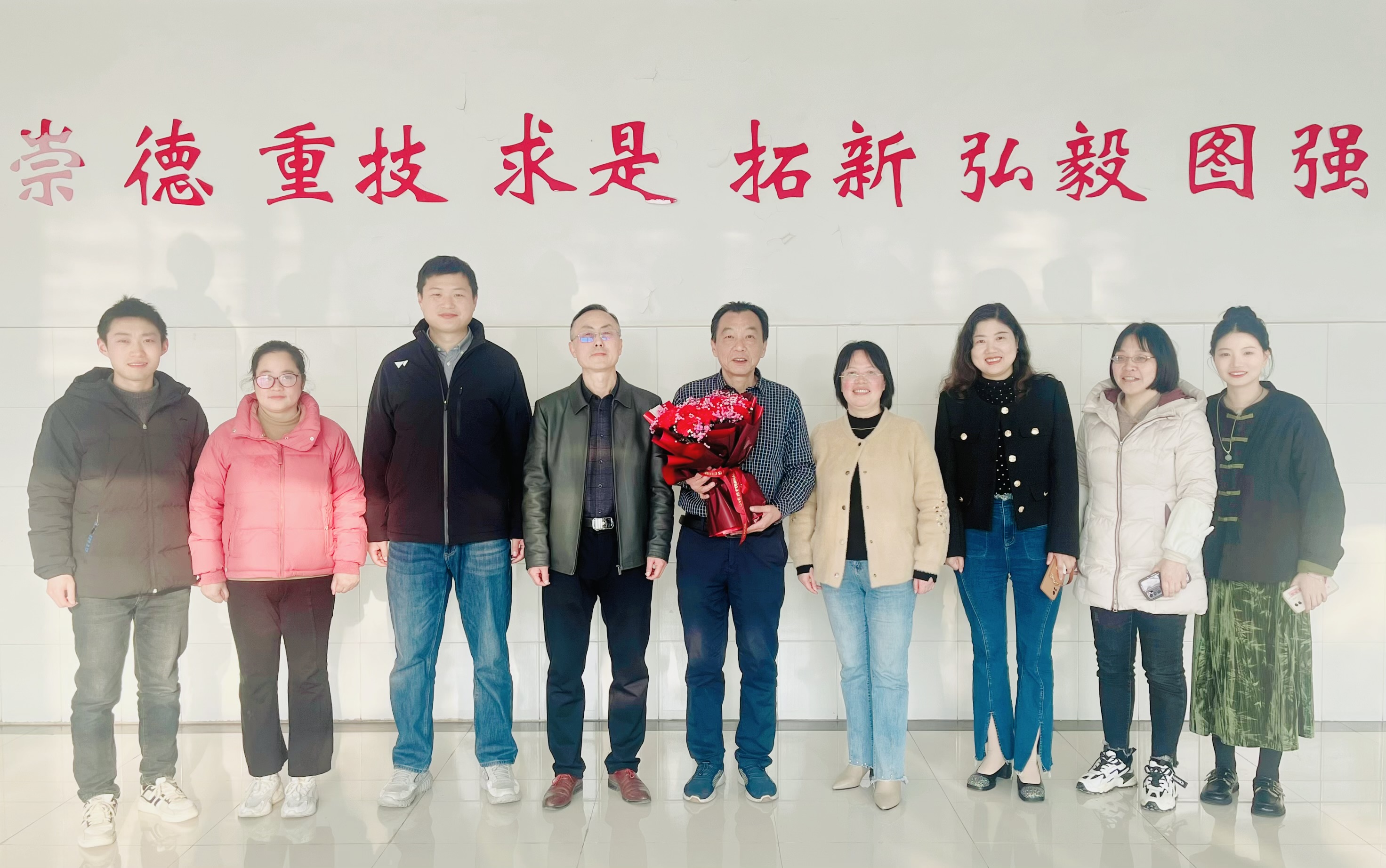 宁业群结合自己的工作经历,深情回顾了与大家共事的岁月故事和学院工作的珍贵回忆,对学院贴心的安排、同志们一直以来的支持和配合表示感谢,表达了对学院的满腔热爱和美好祝福。在大家的掌声中,青年教师昌逸文为宁书记送上祝福的鲜花,气氛热烈而温馨。