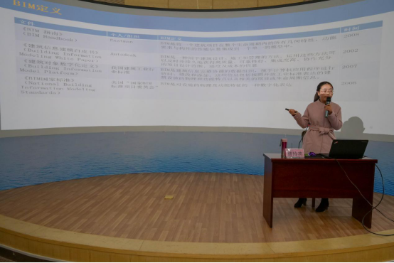 曹博士主要从BIM的基本介绍及发展现状、BIM在建筑全生命周期中的应用、BIM在建筑全生命周期中的应用趋势、基于BIM的个人职业规划四个方面展开,并结合BIM的实际应用中遇到的情况,深入浅出地讲解BIM在工程建设中将发挥的重要作用。通过翔实的讲解,使同学们对于BIM在工程实践中应用有了更加深刻的认识。