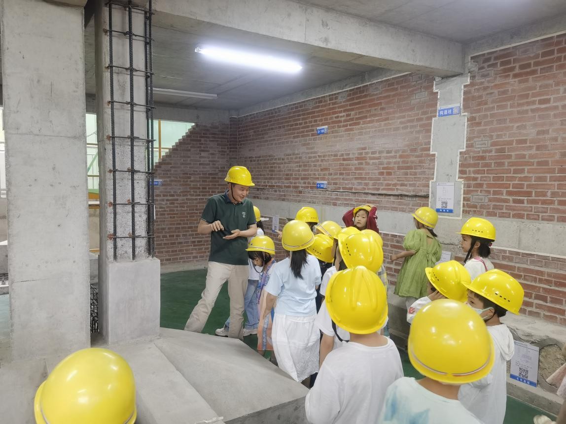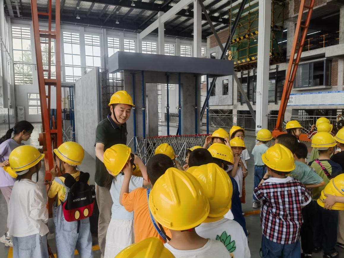 在装配式建筑展示区,黄军福介绍了装配式柱、梁、板、楼梯等构件的特点和作用,清晰展示出装配式构件连接节点、管线预埋等“建筑内脏”。“原来盖高楼也要像乐高积木一样层层往上加!”某小学生兴奋地分享了自己的发现。“装配式建筑原来是这样拼起来的,实体教学模型让外行人也明白了抽象的建筑理论”,带队教师感慨道。