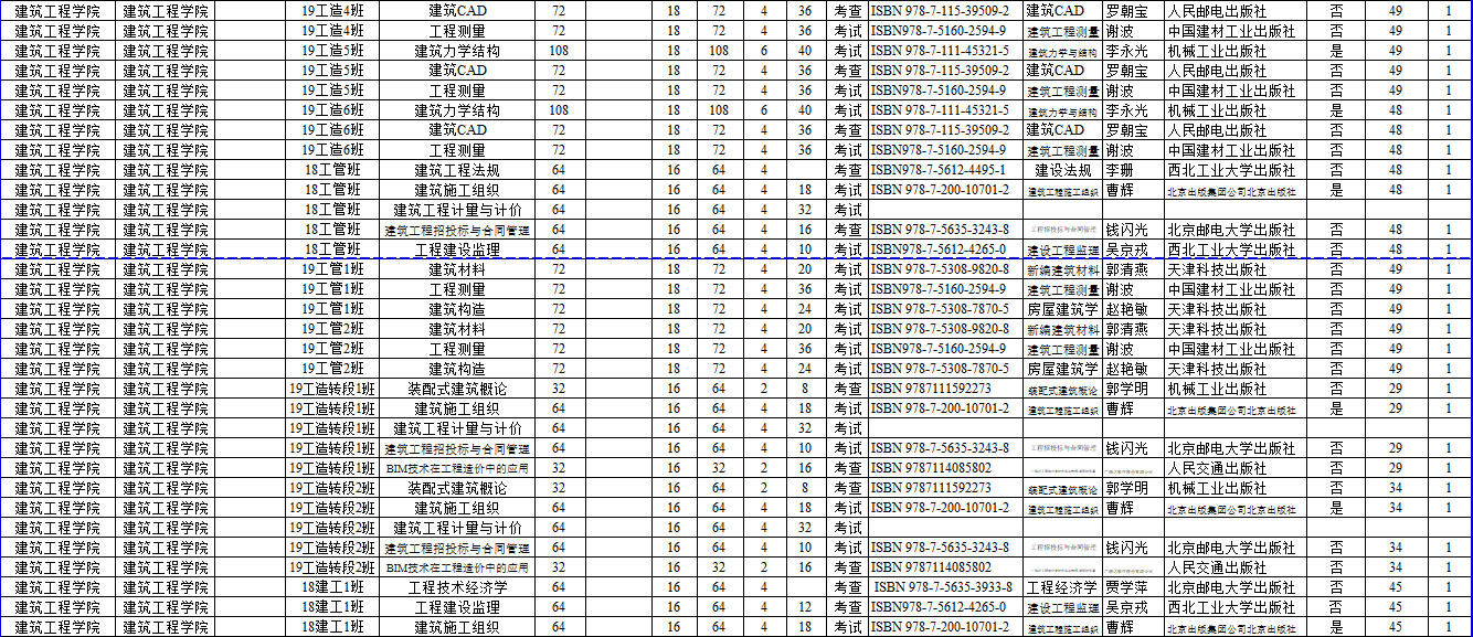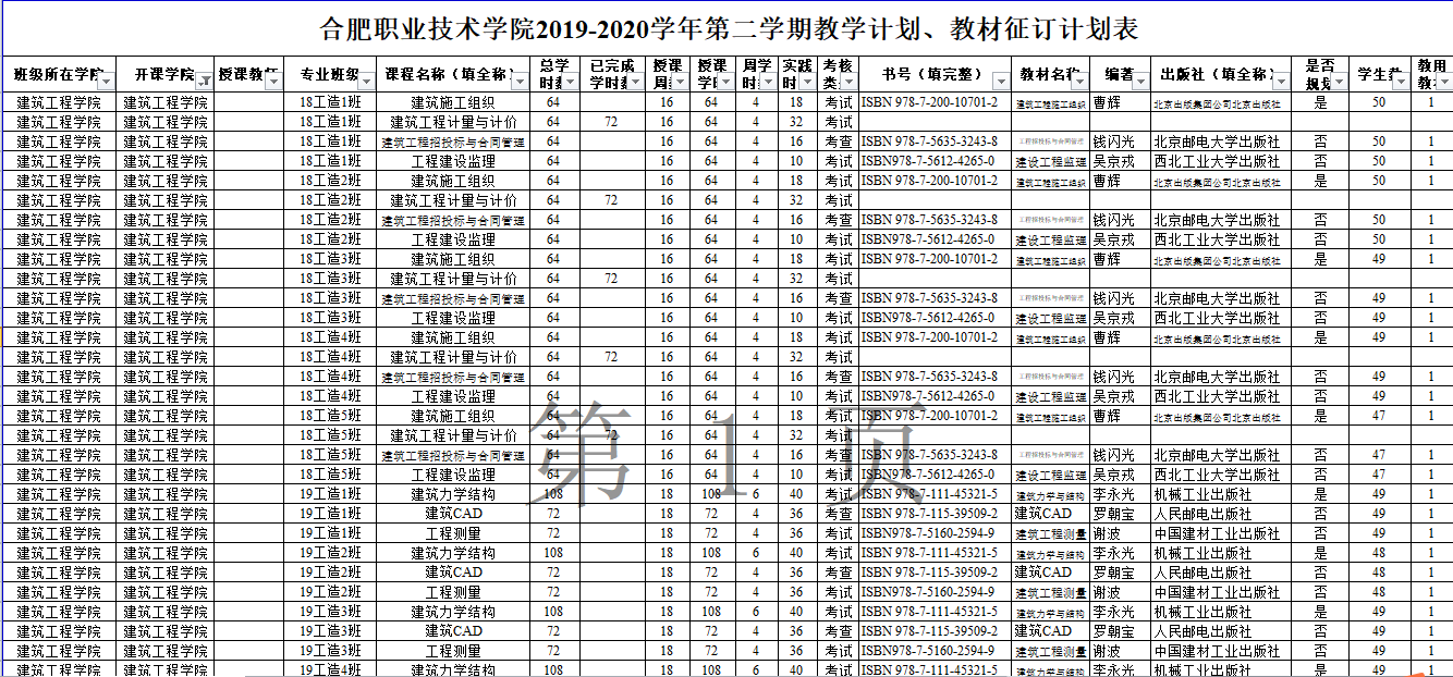 2019~2020第二学期教材征订汇总表