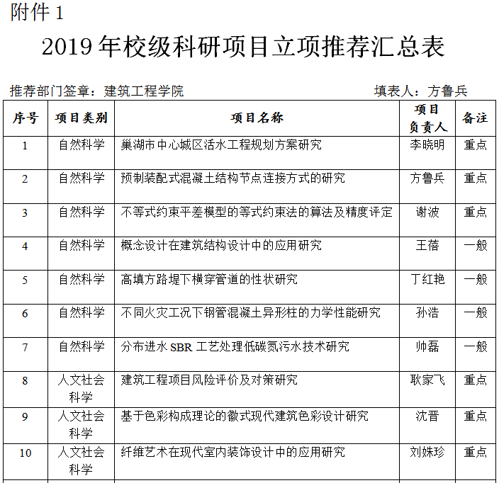 根据《betway西汉姆联官网关于开展2019年度校级科研项目申报工作的通知》(合职院教〔2018〕40号)文件精神,我院组织各教研室积极申报,截至目前共收到申报书10项(见附件1),将于2018年9月13日14:00—16:00在betway西汉姆联官网会议室208,拟对我院申报2019年度高校自然科学和人文社科研究项目组织专家(见附件2)评审。