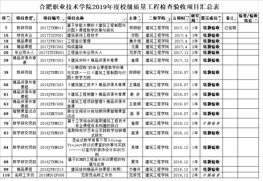 betway西汉姆联官网2019年度校级质量工程检查验收项目汇总表