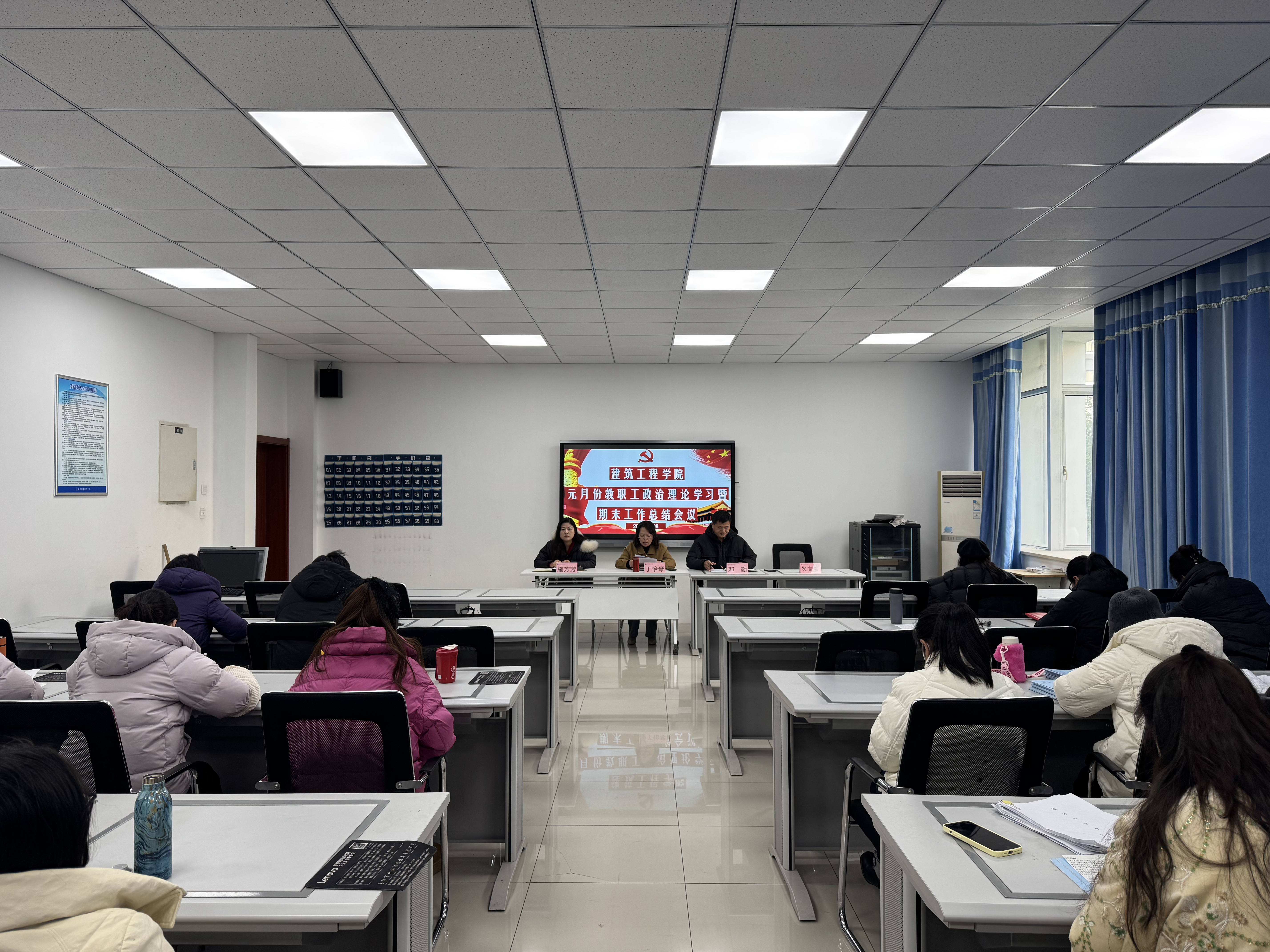 为全面回顾和总结本学期工作成果,明确新学期的发展目标和方向,凝聚全体教职工共识,推动学院各项工作高质量发展,1月8日下午,betway西汉姆联官网在建工楼304会议室召开一月份教职工政治理论学习暨期末工作总结会议,学院党政班子及全体教职工参加会议,会议由学院党总支副书记(主持工作)丁怡琴主持。