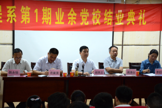 典礼第六项,院党委副书记胡其云同志做重要讲话。他强调,业余党校培训的面还要进一步扩大,每个学员都要坚定信仰,做时代的开拓者、奋进者;要扎扎实实做事、踏踏实实扎实做人。他又提出几点希望:希望学员们要坚守向上向善的正能量;要培养创新创业的能力;再近的距离,也要跑着去,年轻就是力量,有梦就有未来;要时刻修正自己做好表率,逐步成为真正的青年马克思主义者。