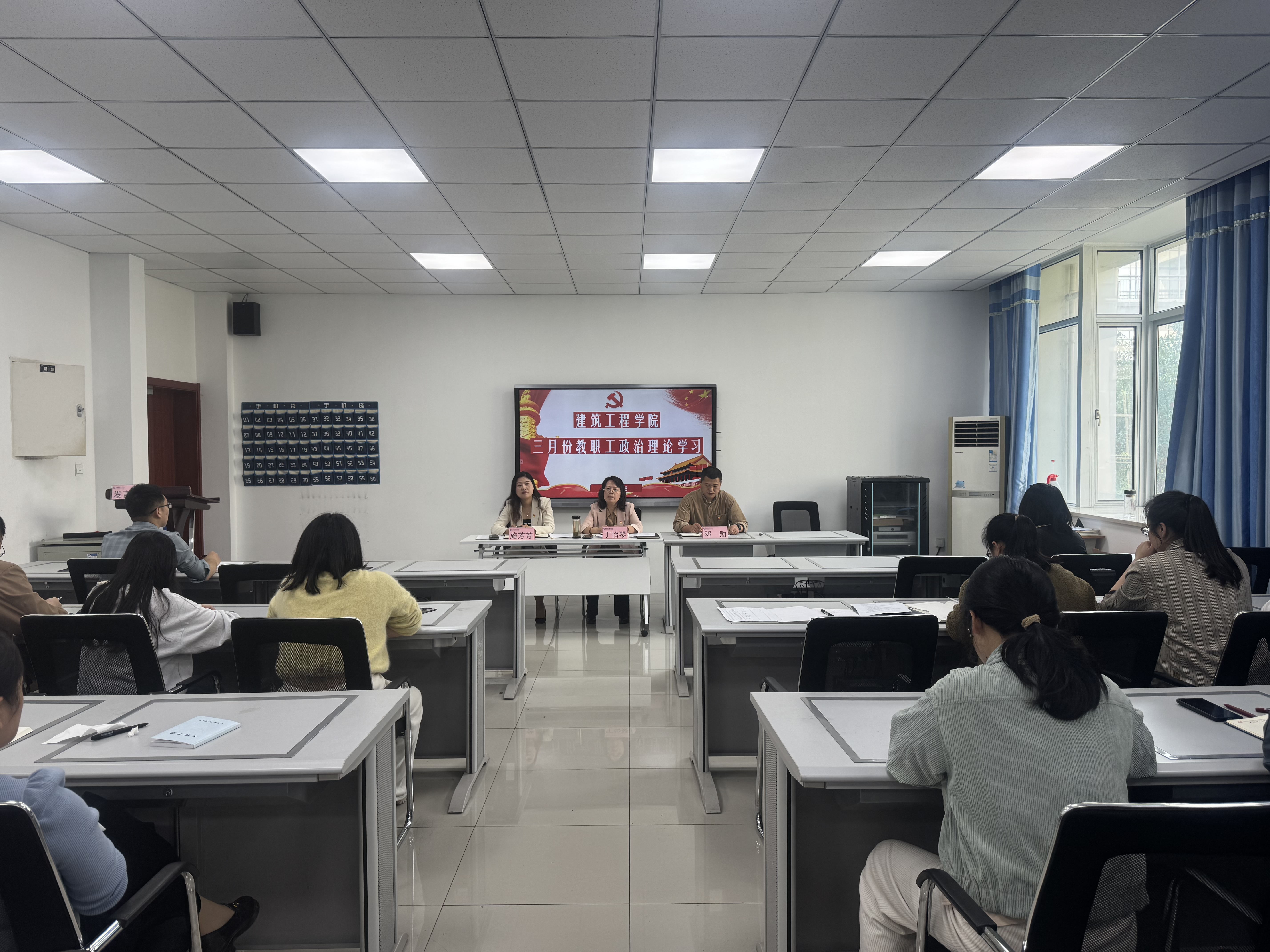 3月26日下午,betway西汉姆联官网在建工楼304会议室召开三月份教职工政治理论学习暨工作布置会议,学院党政班子及全体教职工参加会议,会议由学院党总支副书记(主持工作)丁怡琴主持。