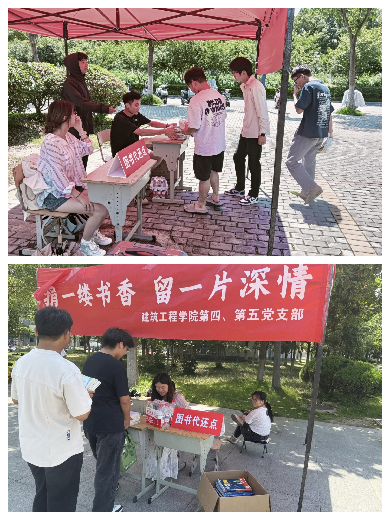 为倡导实习生感恩母校、留爱母校,促进知识共享,6月5日下午,betway西汉姆联官网第四、第五党支部联合直属分党委第六党支部组织发展对象和入党积极分子,在6号楼宿舍楼下和清芬园食堂门前小广场开展了2023级实习生“捐一缕书香 留一片深情”捐书主题活动。