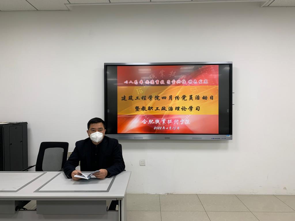 根据校党委统一安排部署,结合我院工作实际,4月13日下午,betway西汉姆联官网党总支组织全体教职工在建工楼301召开四月份党员活动日暨政治理论学习活动,活动由党总支书记宁业群主持。