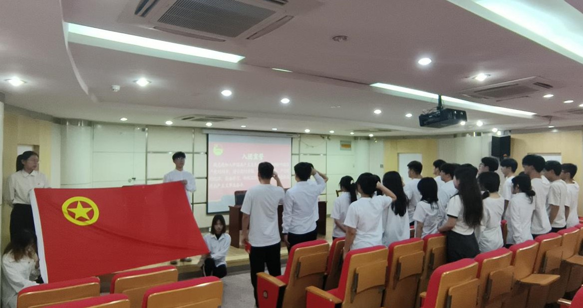 随后,与会老师们为新团员佩戴团徽,发放团章,并勉励新团员们奋勇争先、努力前行。全体新团员在帖德志同学的带领下完成入团宣誓,铿锵有力的誓言,表达了团员们奋发向上、锐意进取的信念和决心。
