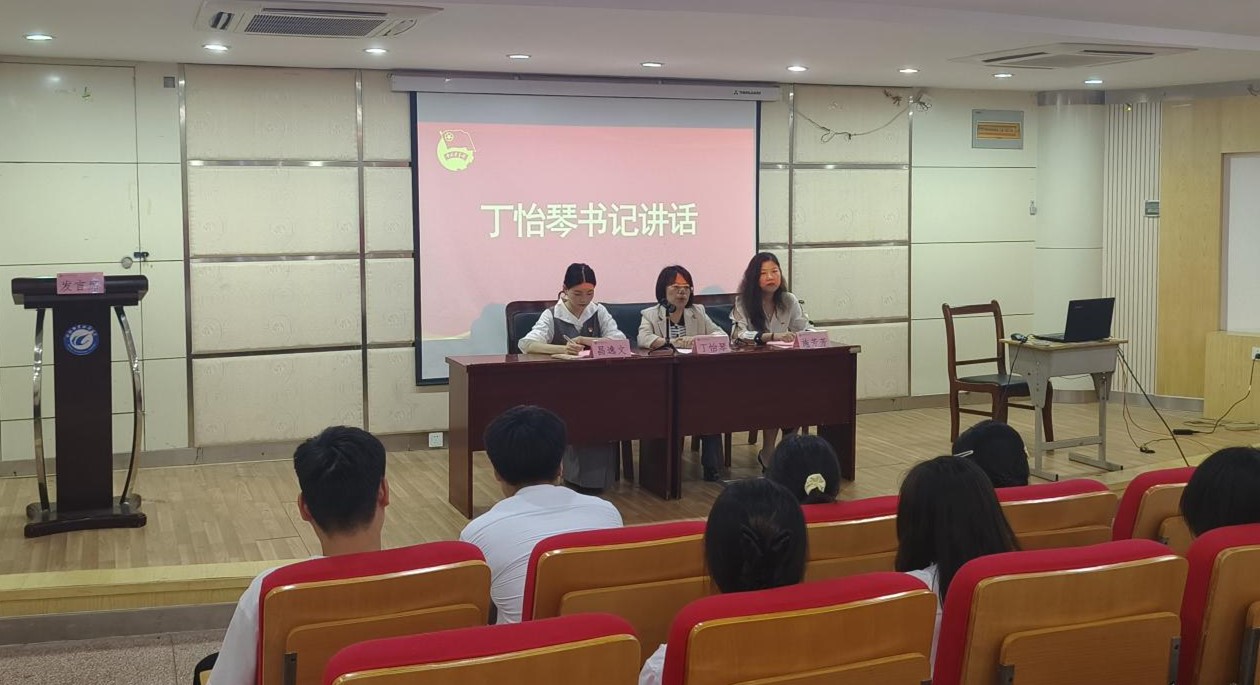 丁怡琴向新团员表示祝贺,同时也向团员们提出三点希望:希望同学们认真学习,逐梦前行,努力实现自己的人生价值;希望同学们的信念上更加坚定,要继续发扬五四精神,以实现中华民族伟大复兴为己任;希望同学们在担当上更加勇毅,要始终坚守心中那份不变的理想和追求。