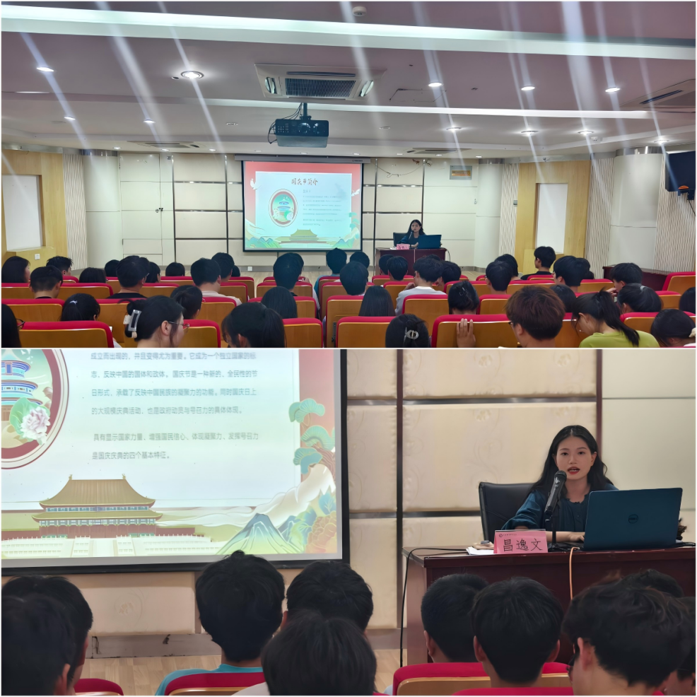 昌老师从国庆节的由来、意义、过去的成就和青年大学生的责任与担当四个方面和同学们做了解读和分享。国庆节是为了庆祝中华人民共和国正式成立这一重大事件而设立的国家正式节日,同时也是中国的一个非传统节日。从1950年起,每年的10月1日成为了中国各族人民隆重欢庆的节日。具有显示国家力量、增强国民信心、体现凝聚力、发挥号召力、培养爱国情怀、传承历史精神的重要意义。回顾新中国成立以来的伟大成就,同学们为祖国的发展与强大感到自豪。