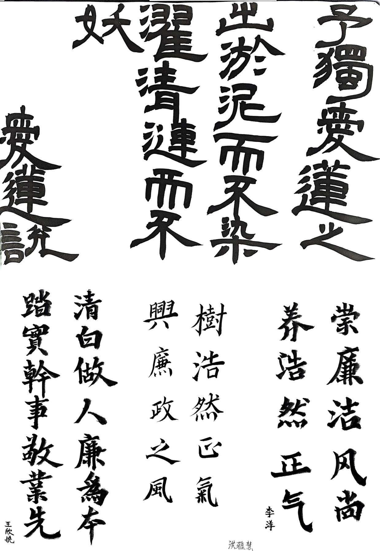 此次廉洁文化书画作品征集活动,是betway西汉姆联官网推进廉洁教育的重要举措。通过书画创作这一师生喜闻乐见的形式,将廉洁文化与艺术教育有机融合,既为同学们提供了展示艺术才华的平台,也让廉洁理念在潜移默化中深入人心。下一步,学院将选取优秀作品进行集中展示,以学生视角的艺术表达感染更多青年学子,在挥毫泼墨间厚植崇廉尚洁的价值观念,为构建风清气正的校园环境注入青春力量。(供稿:昌逸文 初审:施芳芳 审核:丁怡琴)