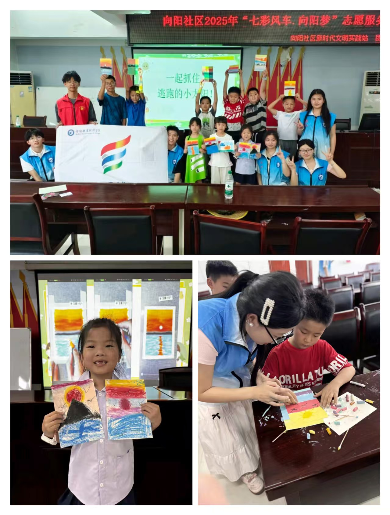 【2025年暑期社会实践】微光织梦映童心 暖行筑梦启未来——betway西汉姆联官网“微光成炬 一路向阳”实践团在向阳社区开展“七彩风车・向阳梦”暑期公益课堂