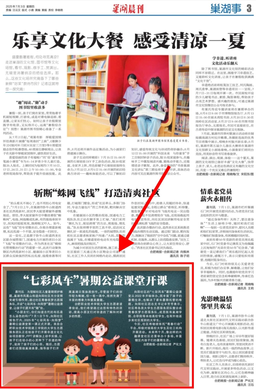 6月30日至7月6日,betway西汉姆联官网“微光成炬 一路向阳”实践团走进巢湖市凤凰山街道向阳社区,开展为期一周的“七彩风车・向阳梦”暑期公益课堂活动。7名实践团成员带着精心设计的课程方案,为社区儿童带来了一段充实而有趣的学习时光。