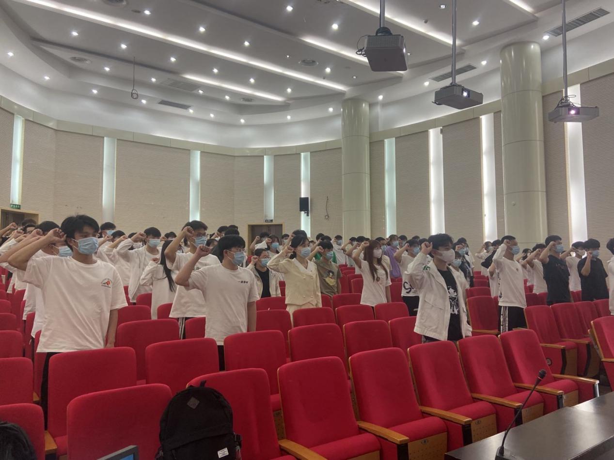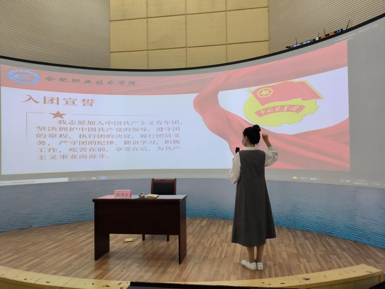 活动的第二部分是现场全体团干、团员代表重温入团誓词。在一句句铿锵有力的誓言声中,每一位团员坚定不移听党话、跟党走的初心更加坚定。让团徽在党旗下闪耀,让青春在奋斗中升华。