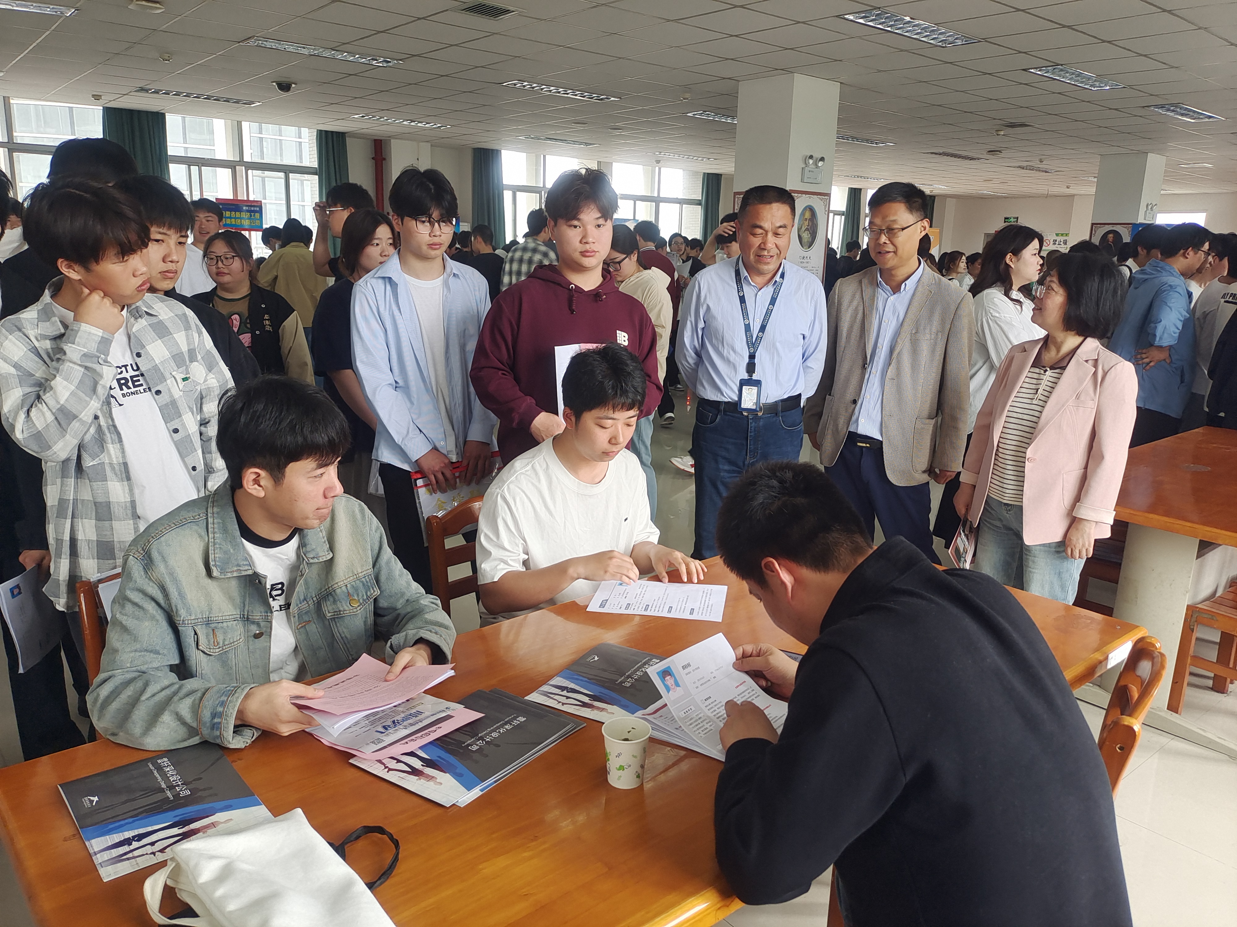 双选会现场,同学们积极参与,主动咨询,现场气氛热烈。同学生们手持精心准备的求职简历,纷纷前往展位咨询岗位情况、发展空间、薪资待遇等问题。同时,也有不少23级学生来到现场,提前了解就业岗位情况,为今后就业提早做准备。