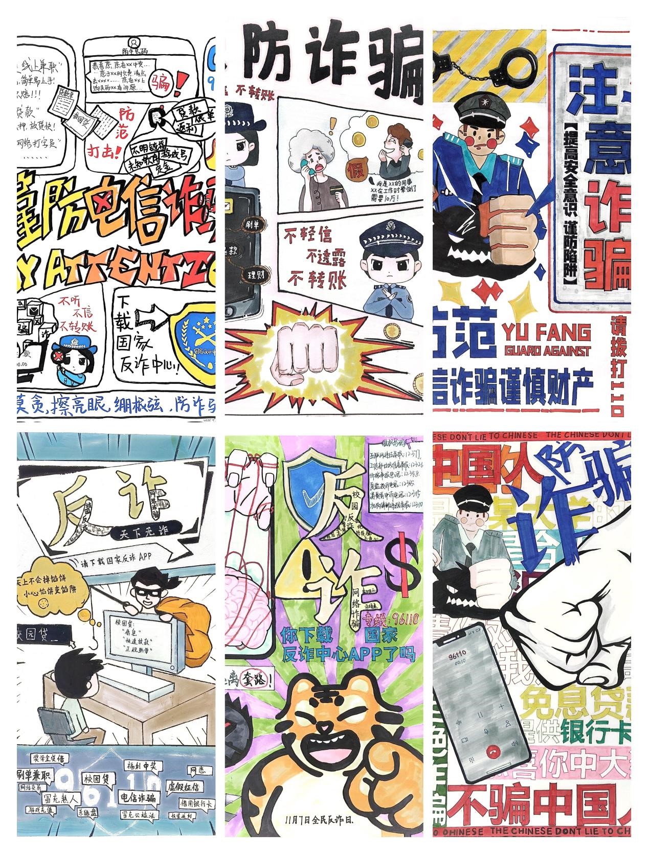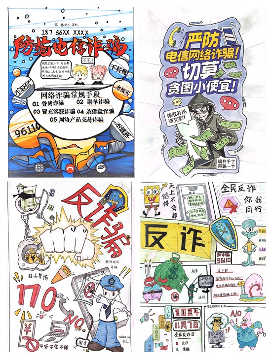 本次活动通过邀请同学们自己设计和绘制预防诈骗的主题海报,使学生们在作品准备时,自觉主动的去搜集资料,学习更多反诈知识。同时,也拓展了开展防诈教育的方式方法,从单一的“老师讲学生听”变成“学生画学生看”,让防诈宣传教育既有“大张旗鼓”,也有“润物无声”,从而提升教育实效,进一步推动了“平安校园”的建设。(供稿:昌逸文 初审:施芳芳 审核:丁怡琴)